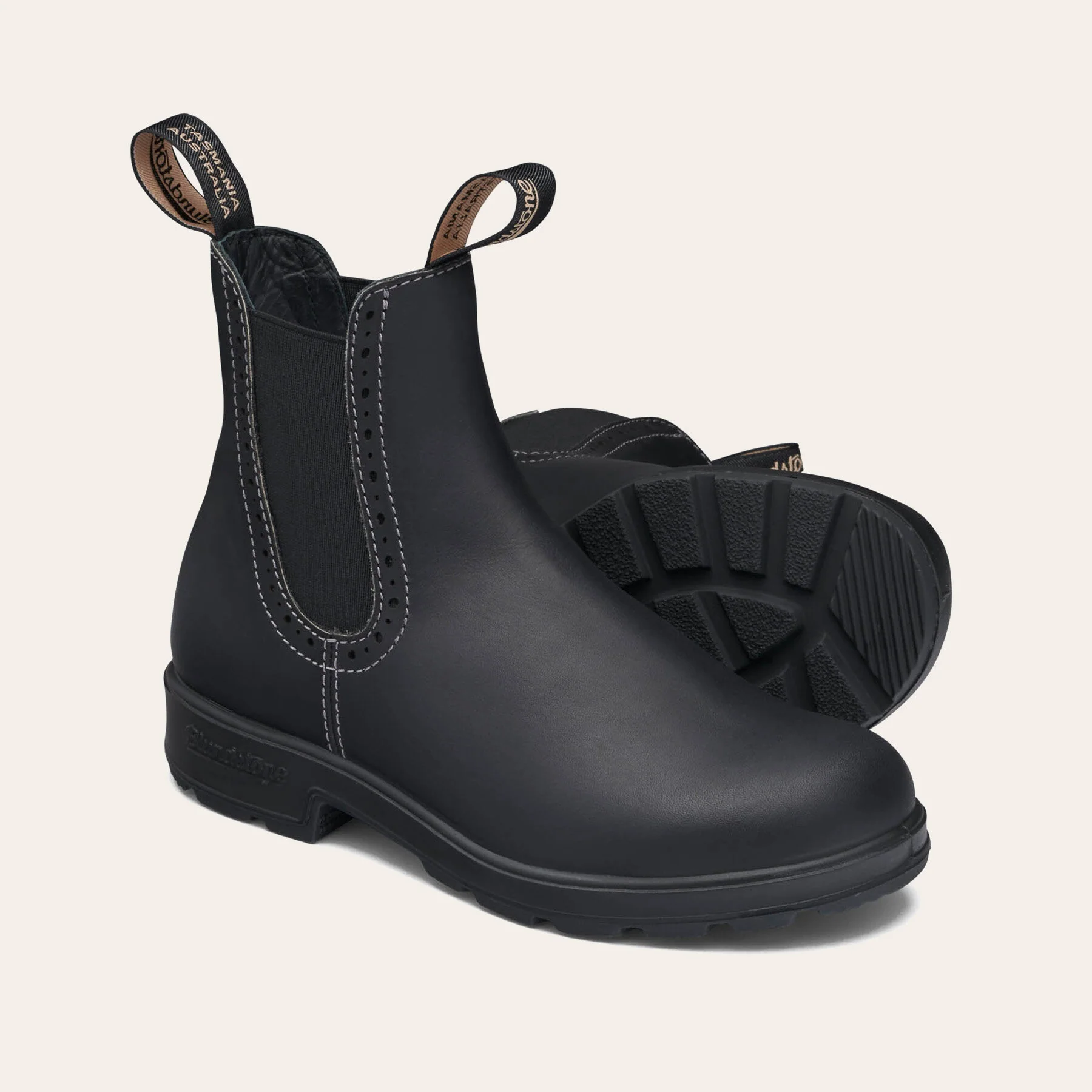 Las Blundstone #1448 de la colección Originals están fabricadas en piel negra y se caracterizan por un corte más alto que las clásicas botas Chelsea. El modelo es sofisticado y elegante, sin dejar de presentar todas nuestras características clásicas de comodidad: lengüeta doble para facilitar el calce, elástico lateral y suela de goma dentada antideslizante con talón elevado.