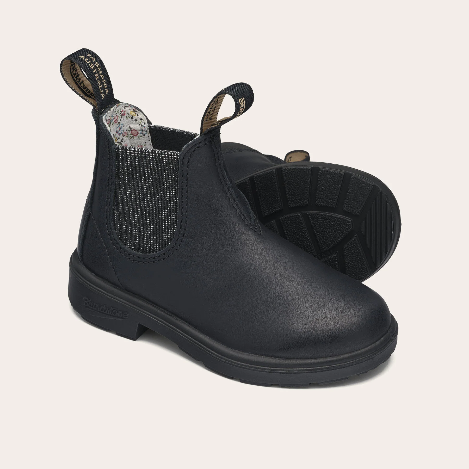 Los botines de la serie Blundstone #2096 Kids están confeccionados en piel negra impermeable con elásticos laterales de purpurina plateada. Presentan las clásicas lengüetas para un ajuste fácil y suela de goma antideslizante. Un botín resistente, que ofrece el máximo nivel de seguridad y confort. Perfecto para las aventuras al aire libre de los más pequeños.