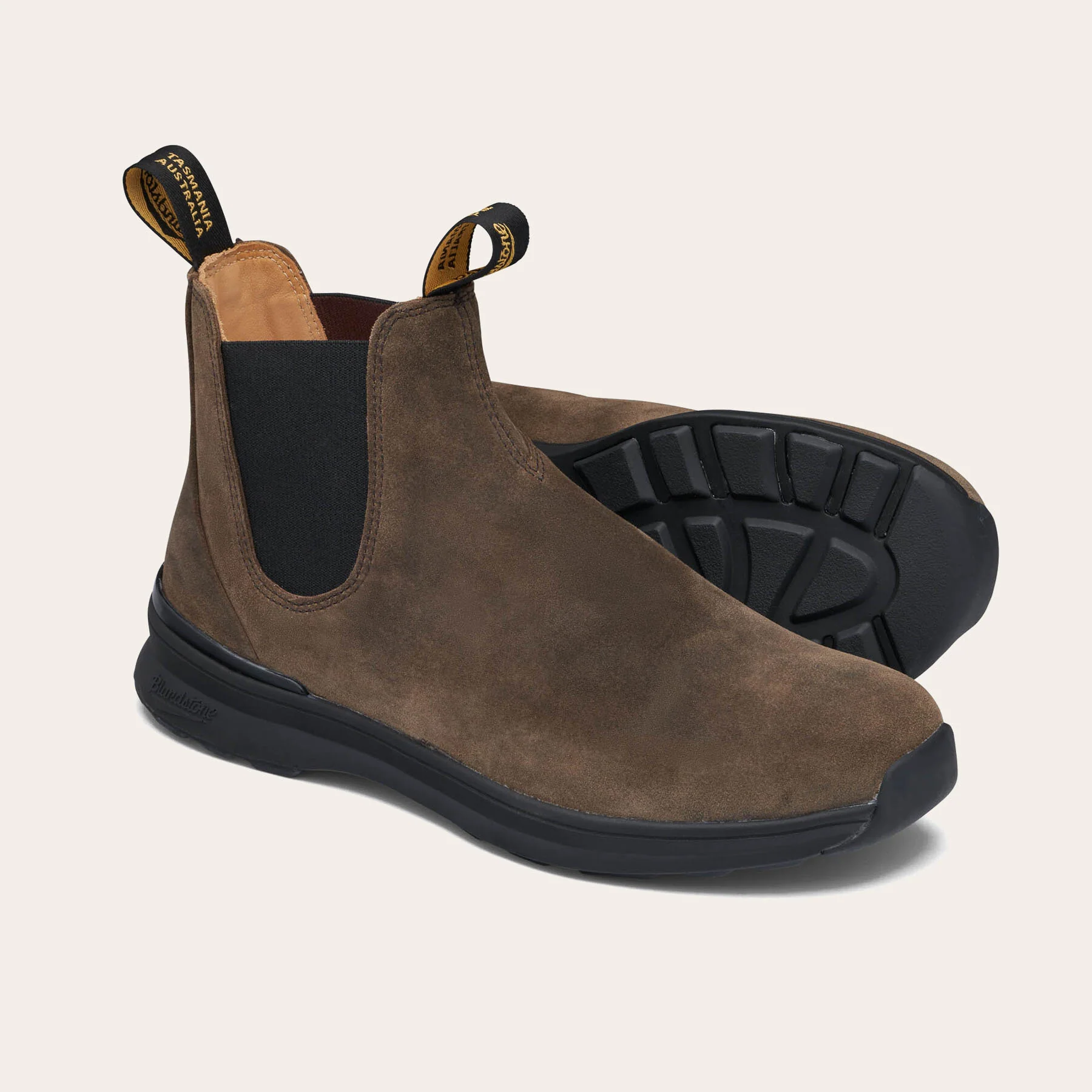 Botas Blundstone #2142 de estilo Chelsea, fabricadas en ante marrón con elásticos laterales y suela de goma que asegura una excelente pisada. Empeine con pespuntes en el talón y delante y práctica lengüeta delante y detrás para facilitar el calce. Unas botas deportivas de la colección Active, para empezar una nueva aventura con la máxima comodidad.