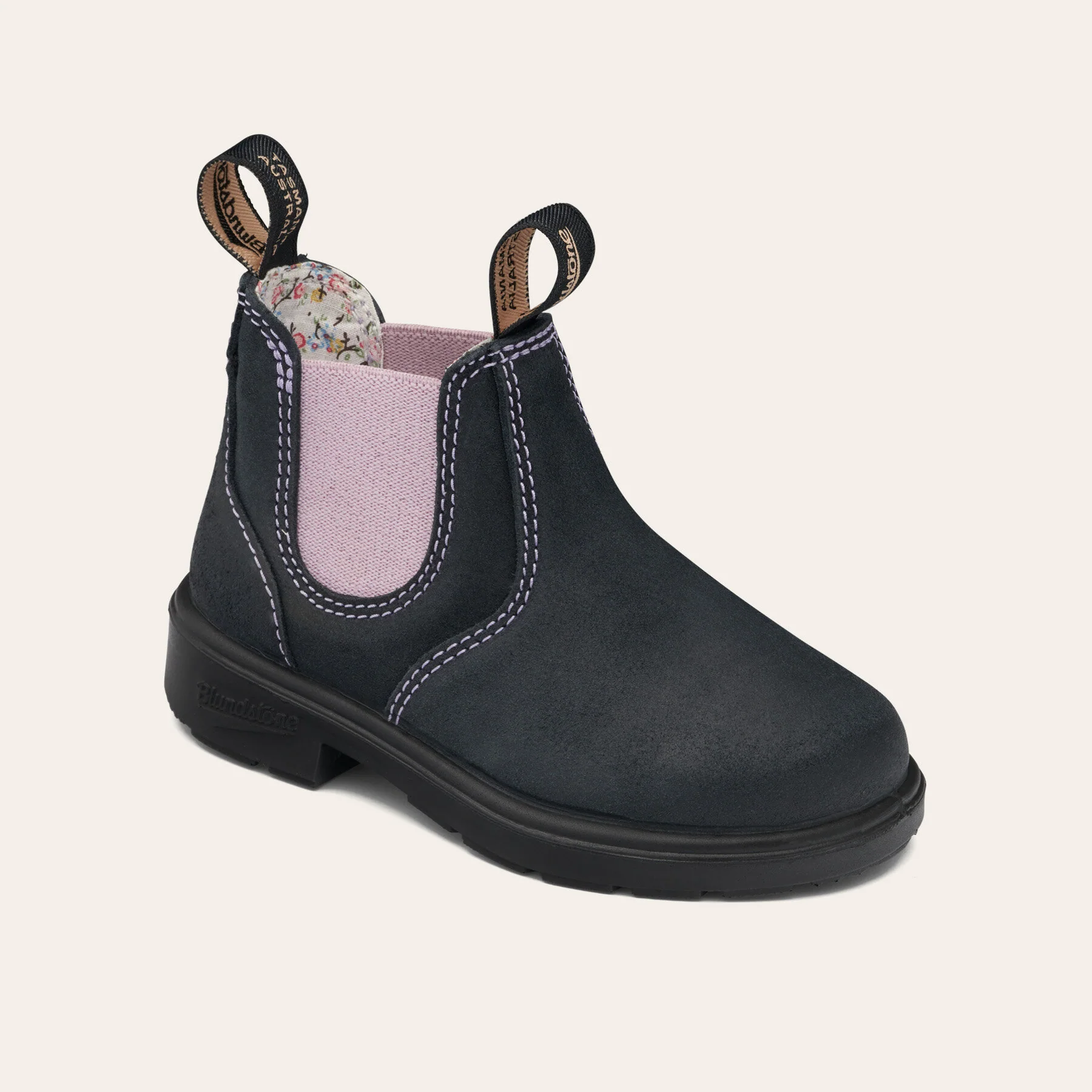 Las botas Blundstone #2195 de la colección Kids son ideales para los looks modernos de los niños. Fabricadas con el estilo de las botas Chelsea, con empeine liso en ante azul, con elástico rosa y forro con estampado floral para un toque moderno. Con lengüeta delante y detrás para facilitar el calce a los niños y suela de goma resistente y antideslizante. Este modelo es la versión adorable para niño de las botas para adultos #2034.