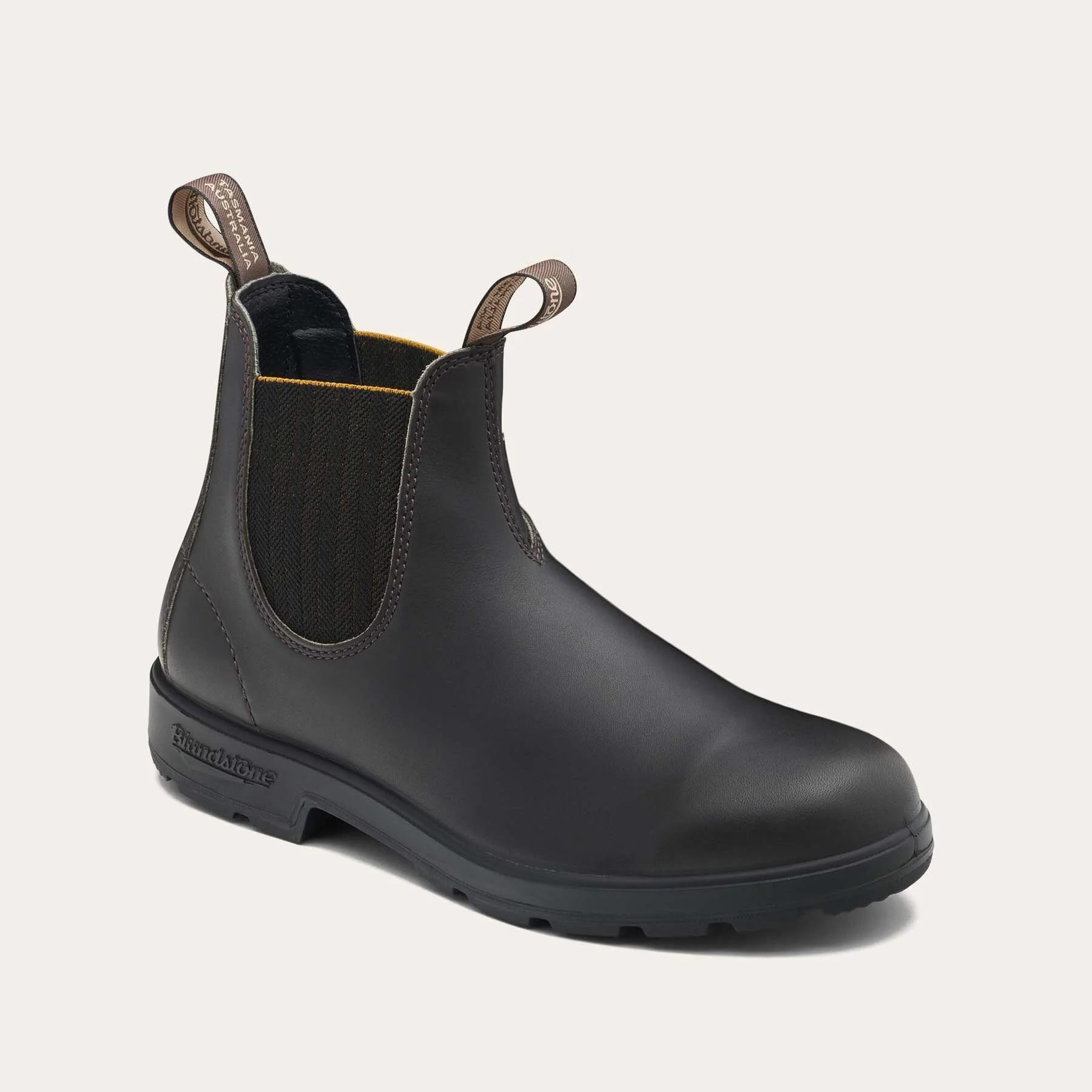 Las elegantes y duraderas Blundstone Original #2403 están fabricadas con piel de primera calidad resistente al agua. La tecnología XRD® en el talón ofrece una amortiguación excelente y protege las articulaciones, mientras que el cambrillón de acero proporciona estabilidad y apoyo. La bota está acabada con un elegante elástico en espiga lateral marrón y mostaza. Estés donde estés, y hagas lo que hagas, estas botas serán perfectas para tu día a día.