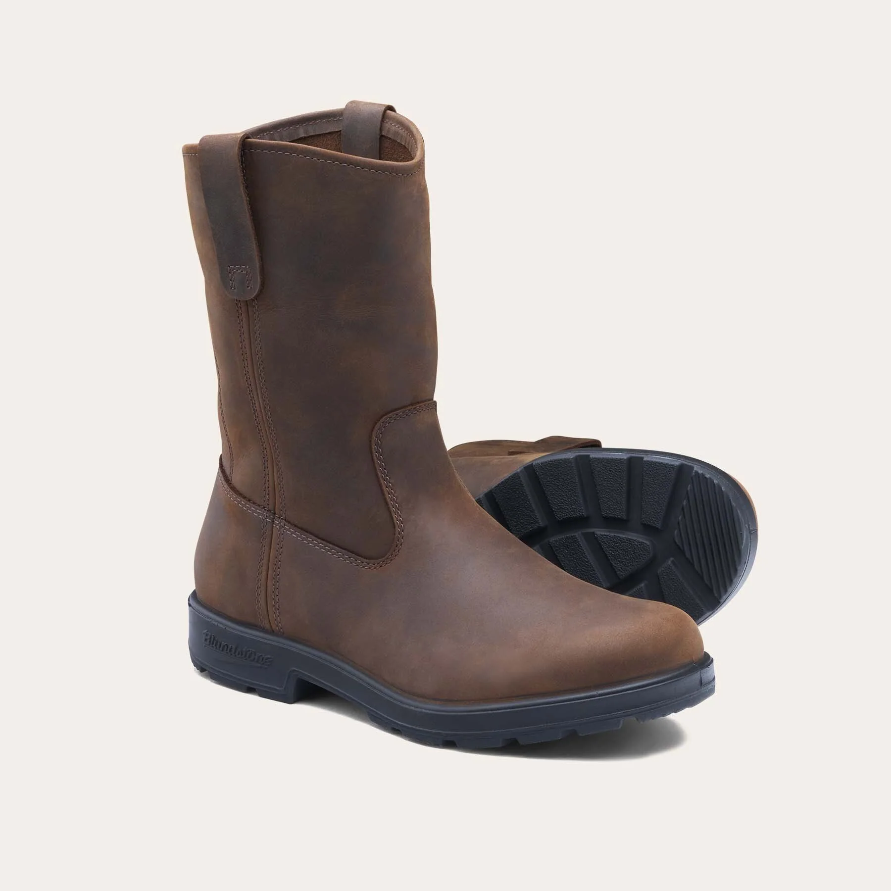 El modelo #2527 de Blundstone se inspira en el diseño del calzado de trabajo y lo interpreta en clave moderna; el resultado es una bota duradera pero con un look actual. Están confeccionadas con piel nobuck encerada y engrasada resistente al agua, y no llevan forro para que el ajuste sea ligero.
